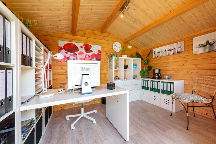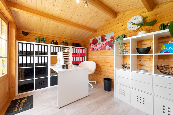 Arbeiten im Grünen- und das ganz ungestört und trotzdem nah der Familie. Unser Haus R 9a können Sie mit wenig Aufwand in ein Garten-Office verwandeln. Es bietet genug Raum für gute Ideen und eine Atmosphäre, die sowohl zum Arbeiten als auch zum Entspannen einlädt. Mit einem praktischen Büro im Garten heißt es außerdem: Nie wieder Stau auf dem Weg zur Arbeit!